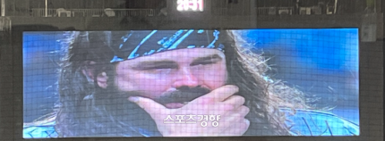 이어 잠실구장 마운드에는 켈리 유니폼 모양으로 만들어진 거대한 현수막이 펼쳐졌다. 그가 달고 뛰었던 등번호가 새겨진 현수막이었다. 세차게 내린 비로 현수막은 흠뻑 젖었다.