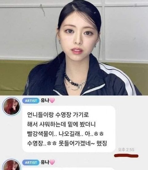 ?? 저때 유나 빨머로 염색해서 머리에서 빨간물이 흐른다고 한거엿음