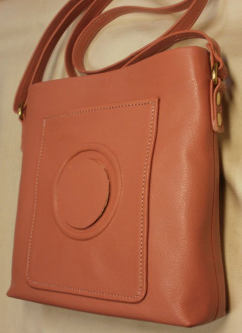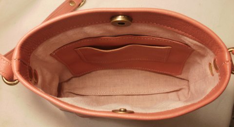 핑크 컬러 천연 양가죽으로 제작한 미니 숄더백입니다.(마디샤가죽공예)