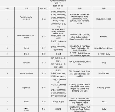 엔믹스 트랙리스트 뜸