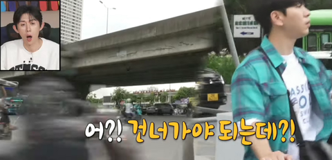 버스정류장을 가야하는데 쌩길을 건너야 함