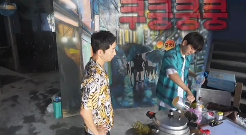 공사중인 형 식당 도착해서 레시피 전수중