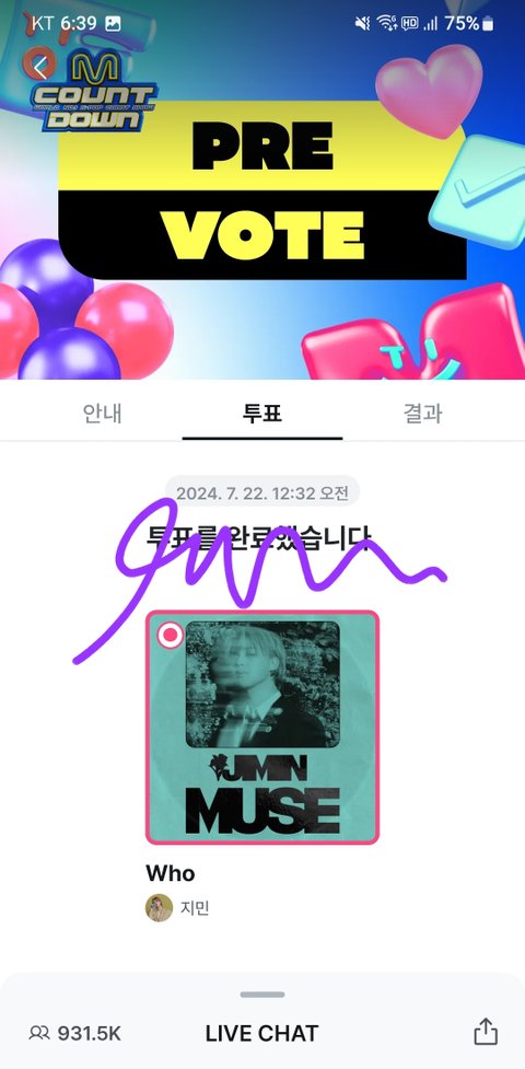 주간인기상 떴고 엠카 사전투표는 1,2 위 계속 엎치락뒤치락 중이래 사전투표 오늘까지니깐 ㄱㄱ