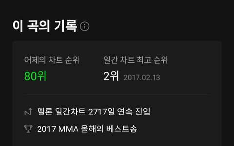 17년 2월 13일 발매 이후 7년 5개월째 일간차트 유지중