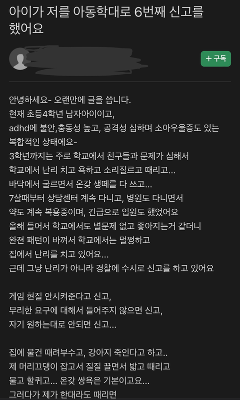 아이가 저를 아동학대로 6번째 신고를 했어요