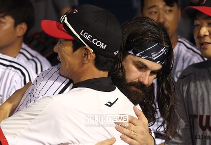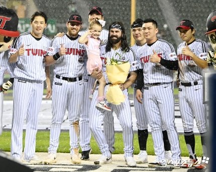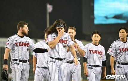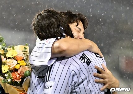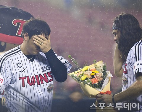 6년간 함께한 켈리 보내며 팬들 선수들 코치진들 통역 상대팀 선수들 모두가 빗속에 함께 울어 잠실야구장 눈물바다