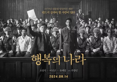 '행복의 나라'는 1979년 10월 26일, 상관의 명령에 의해 대통령 암살 사건에 연루된 '박태주'와 그의 변호를 맡으며 대한민국 최악의 정치 재판에 뛰어든 변호사 '정인후'의 이야기를 그린 작품이다. 특히 지난해 세상을 떠난 故 이선균의 유작 두 편 중 하나다.
