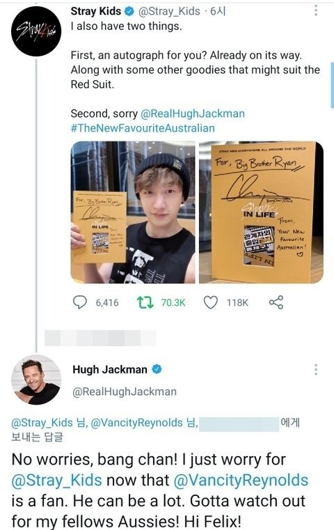 휴잭맨, 방찬, 필릭스는 모두 호주인임