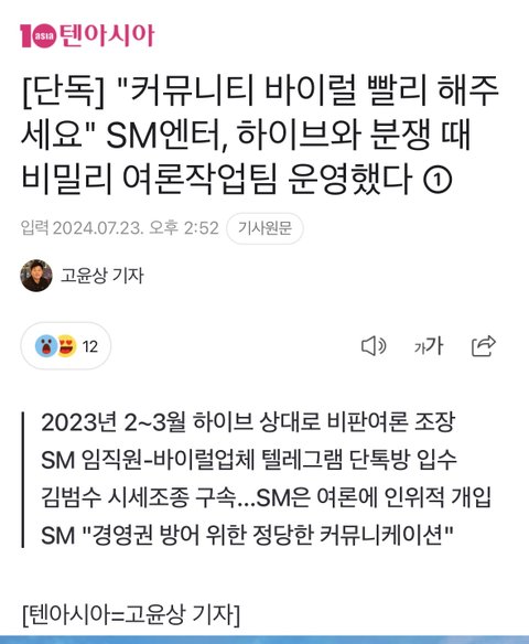 [단독]SM,하이브 상대로 역바이럴 했다