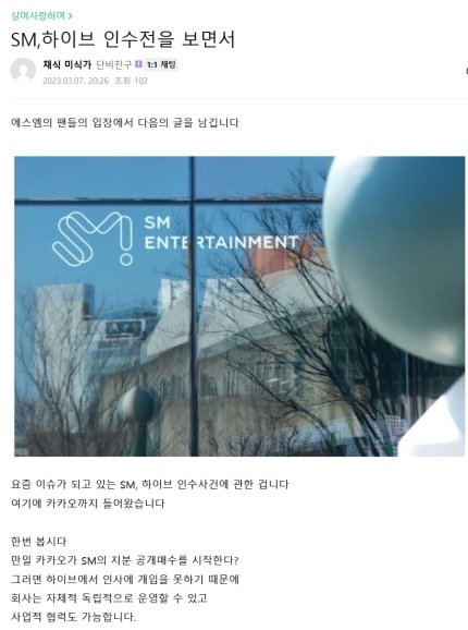 아니 근데 스엠은 빅히트였을때도 열등감 오졌었음 방탄이 엔딩하는 꼴은 죽어도 못봄
