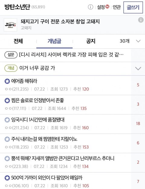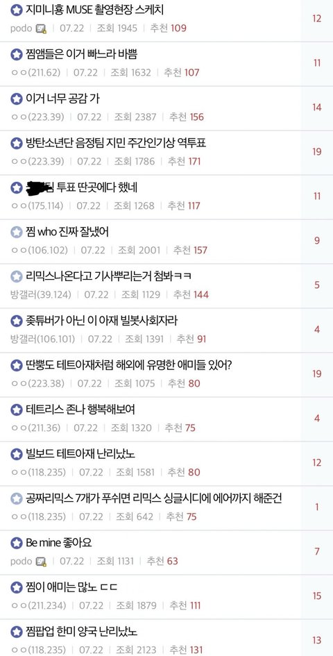 방탄소년단갤 먹고 행패중인 지민악개할머니들