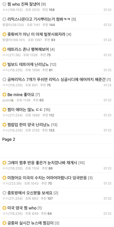 팬톡 댓글 검색 보기