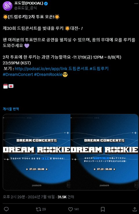 팬들이 투표해서 무대 오를 수 있나봄 상위 4팀만이래