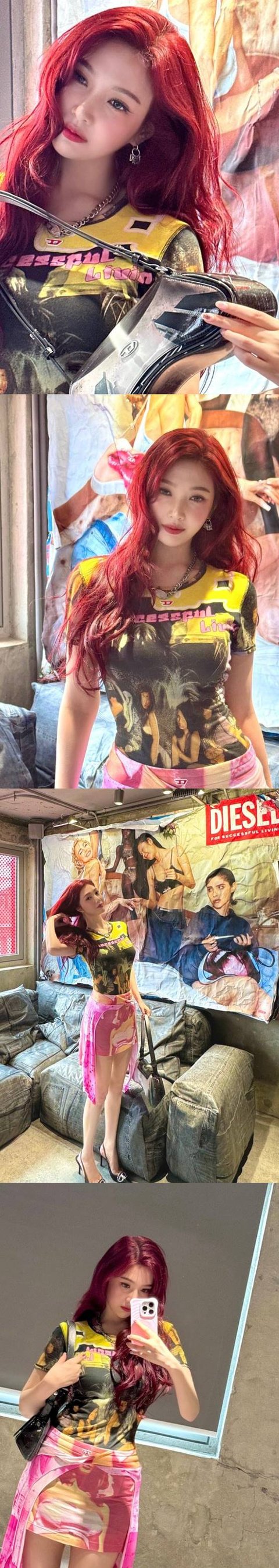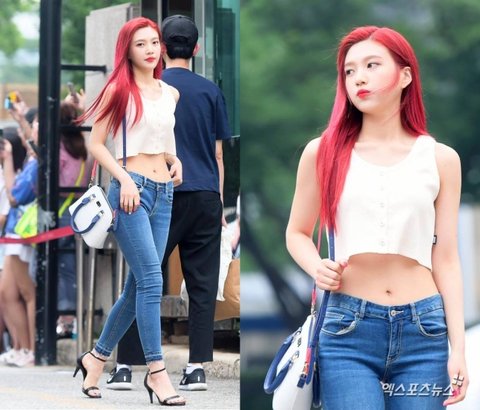 지난 2017년 '빨간맛'으로 활동 당시 빨간 긴 머리를 선보이며 레전드를 경신한 바 있다.