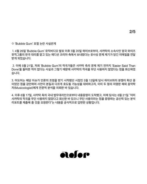 뉴진스 표절관련 어도어 입장