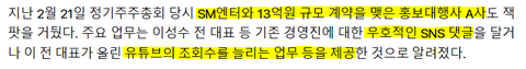 톡선 Sm 바이럴 기사 읽어보니까 아티스트 대상이 아님