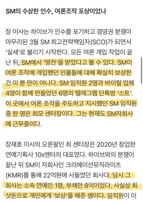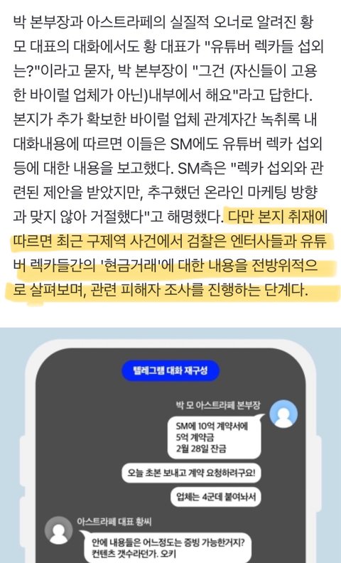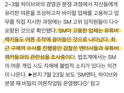 [단독] SM엔터 '여론 조작', 유튜버 렉카 섭외까지 검토…최고임원들도 조직적 개입했다②