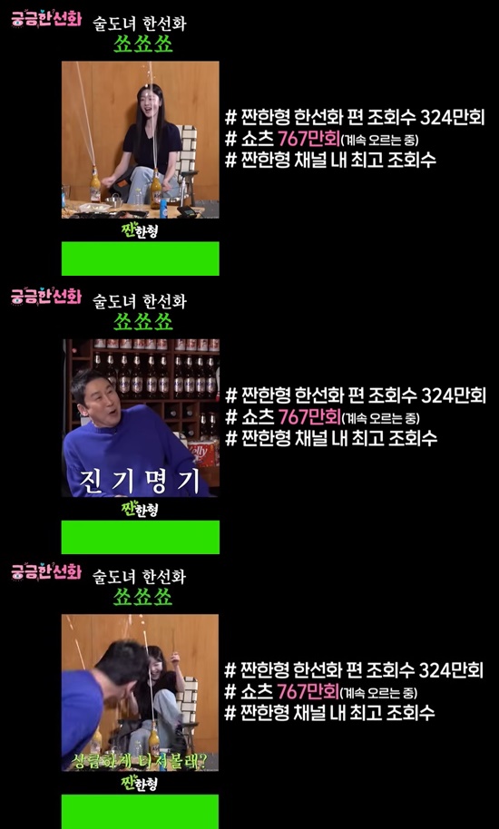 이에 제작진은 지난 해 12월 방송인 신동엽의 유튜브 채널 '짠한형 신동엽'에 출연해 유쾌한 맥주 분수쇼로 화제를 모았던 한선화의 활약을 언급하며 "'짠한형' 조회수가 제일 잘 나왔지 않나. 그 '술도녀' 쇼 한 것이 756만 뷰가 나왔다"고 얘기했다.