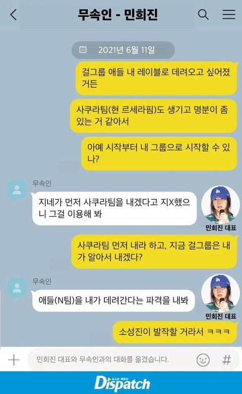 미팅 차주차주차주차주 미루면서 릇 먼저 데뷔시키고 본인 목적 이뤄냈으면서 기자회견에서는 하이브가 하이브 최초의 걸그룹 타이틀을 릇 줬다고 호소한게 어이터짐