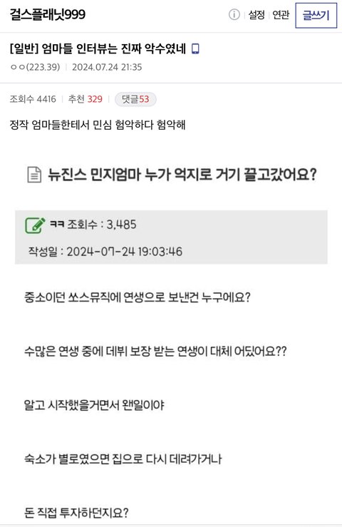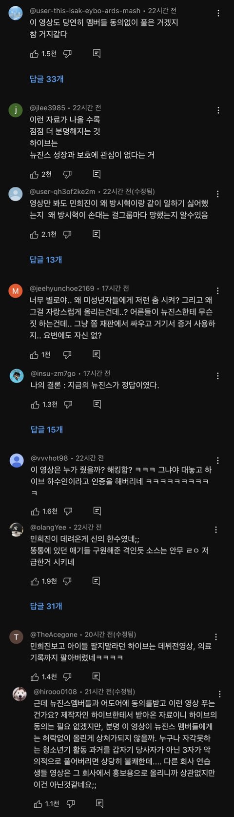 유튜브 여론은 하이브가 반응 개안좋던데 ㅎㅎ