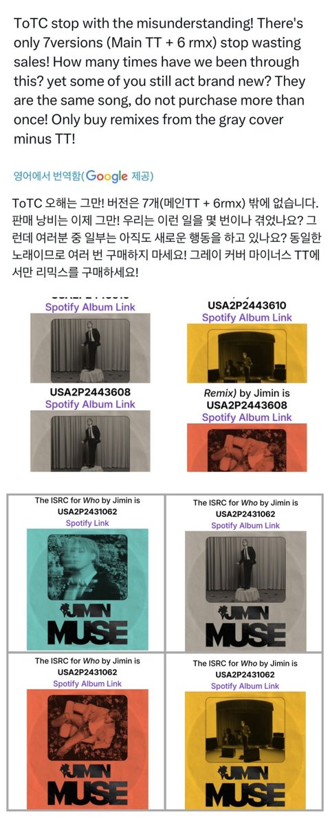 아침부터 악개 정병이 또 작년처럼 날조질하네 지민 저 리믹스 코드 다 같음!! 이미 펙첵된건데 또또ㅋㅋㅋㅋ 작년에 니 최애 프로모 리믹스 겪어봐서 알면서 일부러 이러는거 안쪽팔려? 지민 저거 다 커버만 다른건데 그렇게 따지면 니최애는 100종이게요? 작작해라 악개야^^