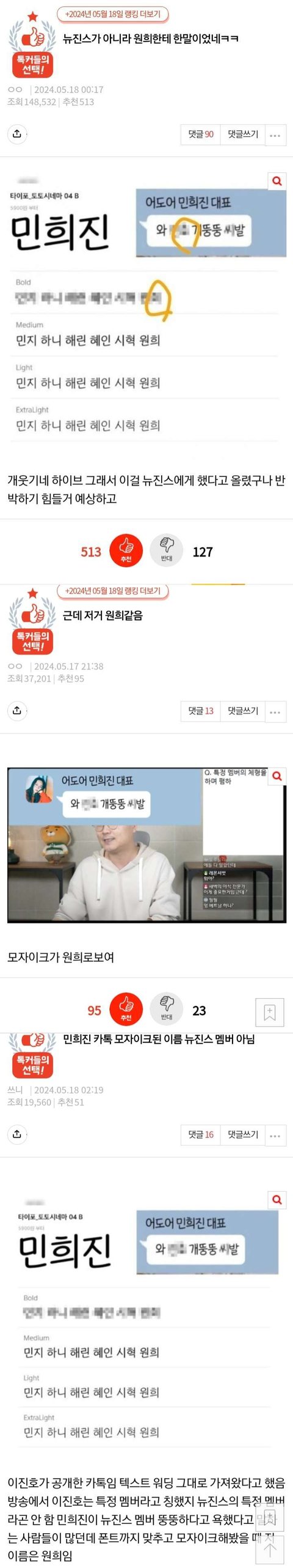 이 글의 존재가 하이브가 불필요한 것은 물론 불접적으로 개인 카톡을 까발려서 소속 아티스트에게 부정적인 이슈를 묻히는 역바이럴의 진원지라는 걸 증명하네.