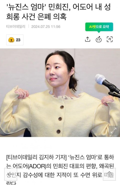 민희진, 어도어 내 성폭력 은폐 의혹 불거져
