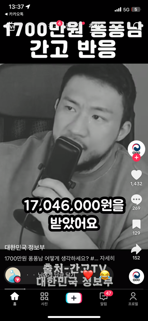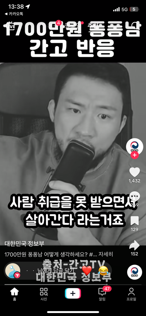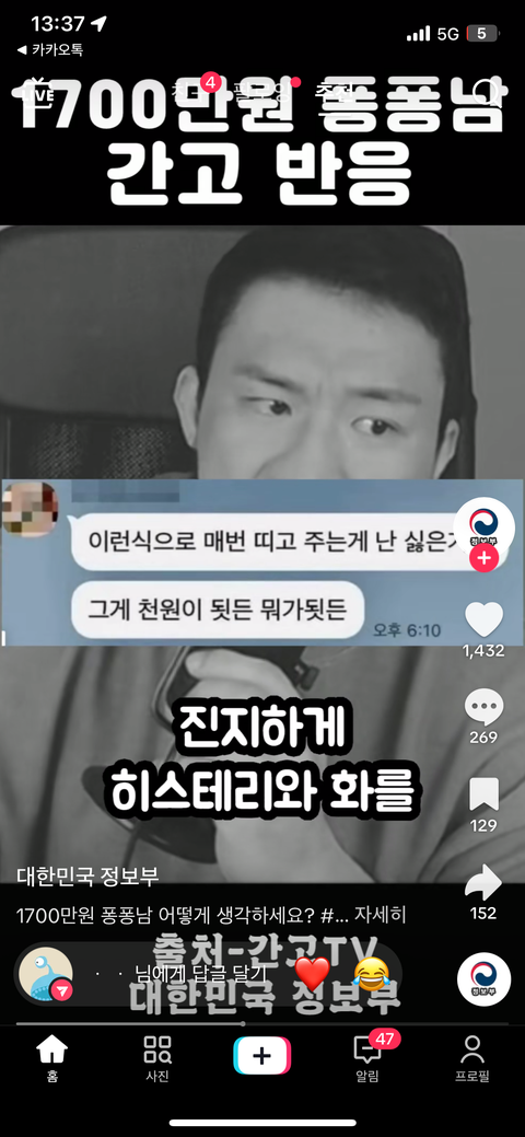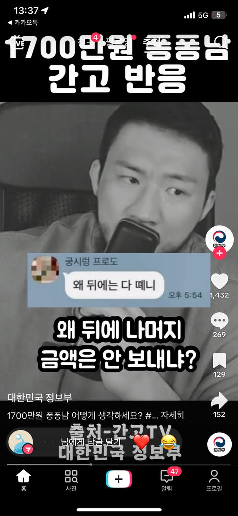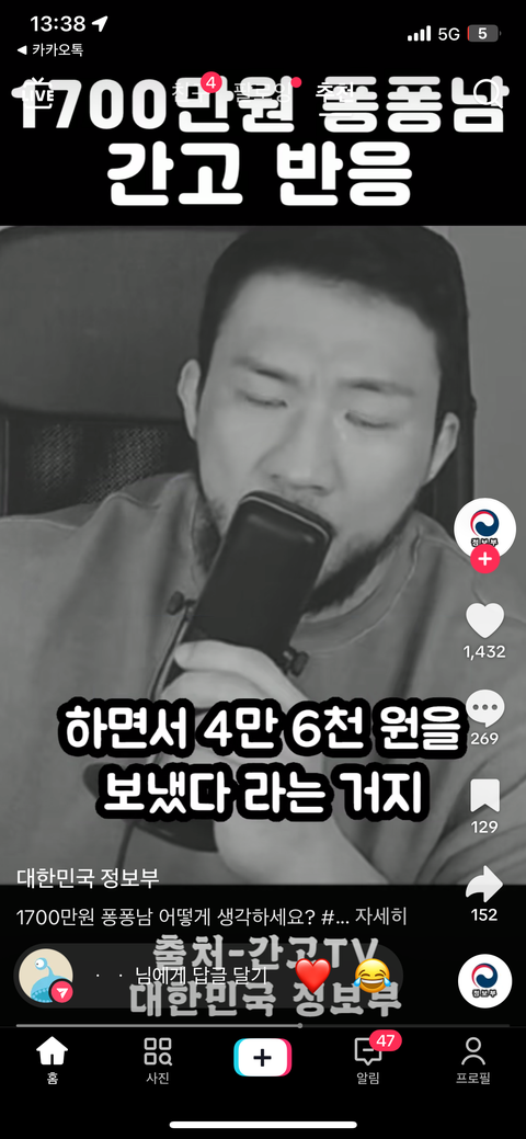 1700만원을 보냈는데 와이프가 4만6천원은 왜 안보내냐는 영상이였고 영상속 남자가 남자들이 가정에서 남자구실못하고 가정에서 ㅂㅅ이 되면 얼마벌어서 갖다줘도 가정에서 대접못받고 ㅂㅅ취급받으며 atm이 되는 과정이다 .. 라고해요