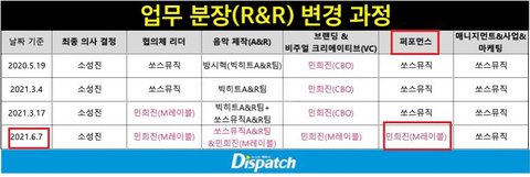 애초에 저런 힐댄스가 민희진 취향이었으면 그대로 데뷔했겠지? 그리고 힐댄스는 쏘스 트레이닝 중에 하나고 민희진은 무대 퍼포 담당이었다는 소리잖아