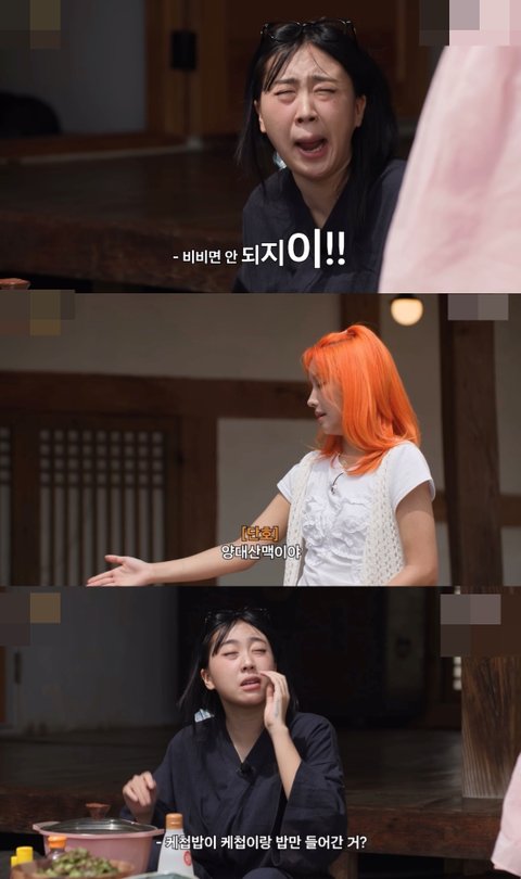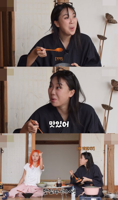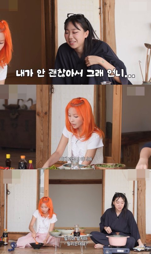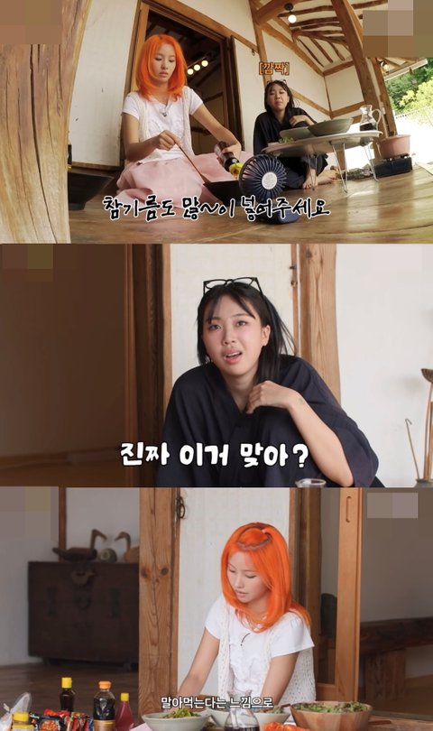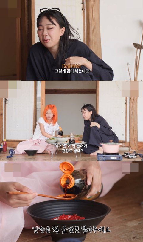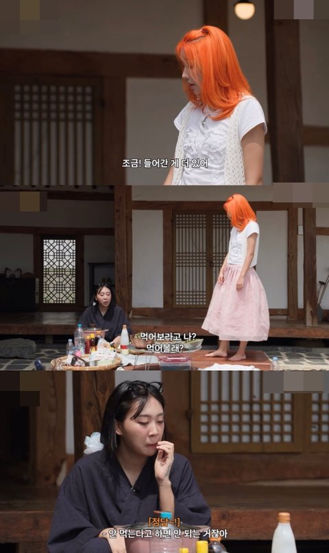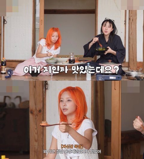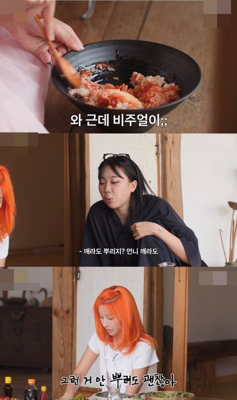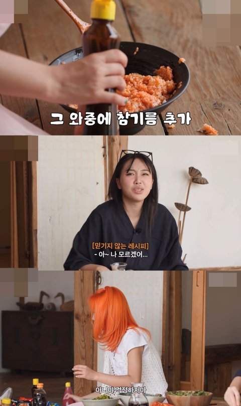 전소연이 먼저 조금 먹어보고 맘에 안 들어서 참기름 더 추가함