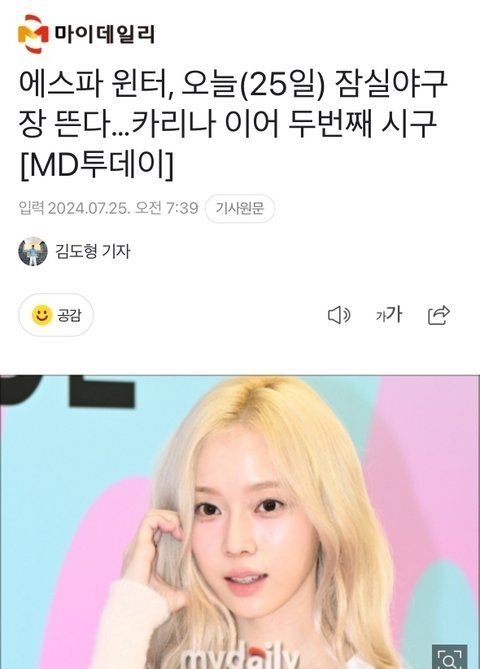 솔직히 여자연옌이 시구하면 뭔가 클리셰같이 예전부터 여신임을 입증한다 하는 그런 느낌이 있잖아. 윈터도 스타일 이렇게 여신머리하고 크롭상의에 장원영 카리나마냥 스키니진 했으면 너무 예뻤을텐데...