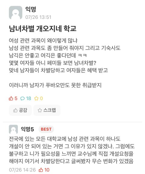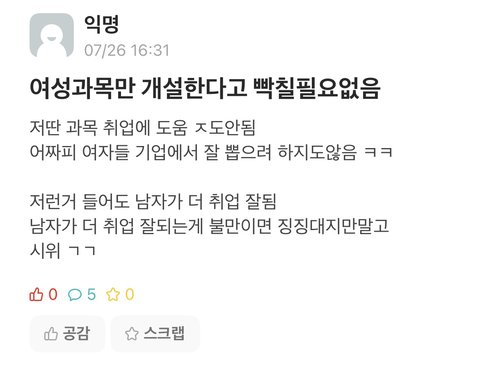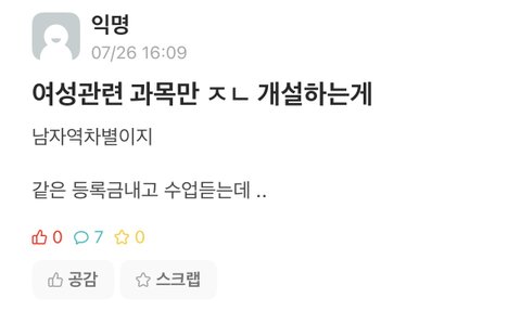 진짜 하다하다 ㅋㅋ 교수는 스윗한남이라서 개설 안 한다고 교수욕하고 있음ㅋㅋ