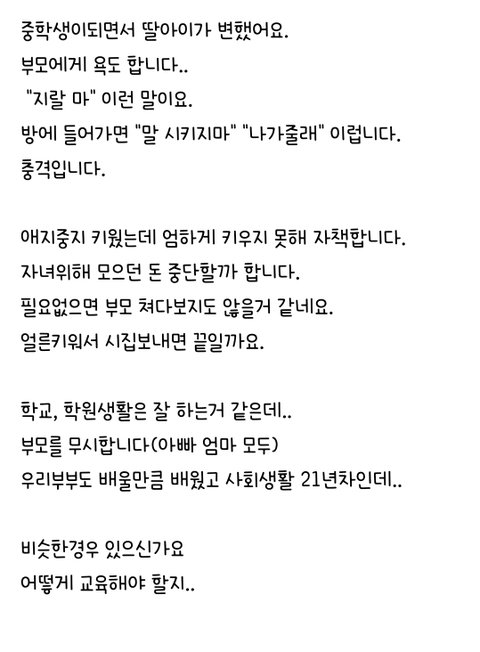 사춘기랍시고 부모한테 재수없네 조용해라 이런말 안쓰는데