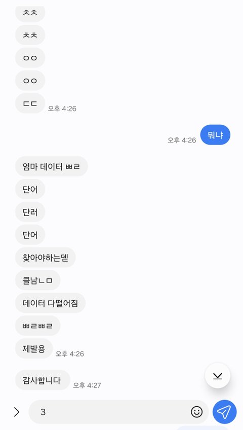 핸드폰을 열고 이 미친 문자톡의
