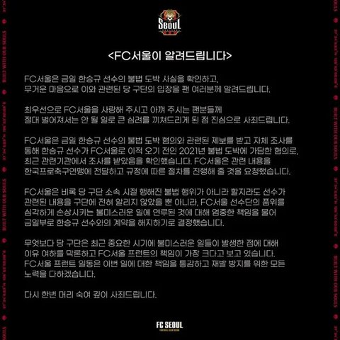 불법 도박 k리그 축구선수 누구? 한승규 선수 FC서울 '계약해지' 통보