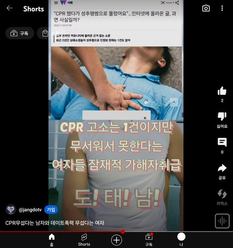 요즘 뉴스에서 cpr무섭다고 못한다는 남자들 속출