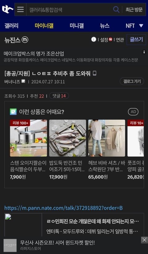 이거말고도 재재랑 여직원사건까지 한두개가 아닌데 판말고 카톡 많이 올라오는데도 없고 몇개 올라와도 사실이지만 어쨋든 하이브 언플임;개저씨랑 하이브 때문~이런 반응이 90퍼임 너무 질질 끌어서 관심 없어졌다기엔 비슷한 날짜에 뜬 부모님 인터뷰?랑 쏘스연습실에서 춤추는거는 또 트위터에서 몇만알티씩 타가면서 하이브 욕함