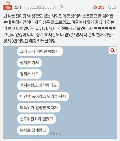 현진이가 오히려 학폭들한테 당한 피해자라는 동창글이 올라와도 학교 공식 학폭 소리 들어도 폭로자들 가만히 있는 거 봐라