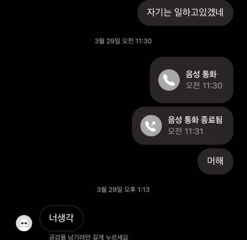 침대에 같이 누워있는데 혼잣말로 ”ㅇㅇ이 잘 사나?” 발언을 함.