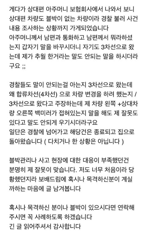 하필 블박 영상도 사진도 없는 상황이라ㅠㅠ