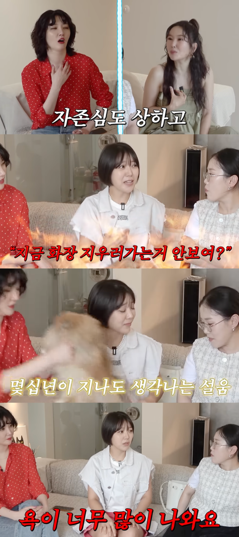 장영란도 “리포터는 연예인 느낌이 아니라 항상 경호원들이 밀친다. 갔다오면 허탈하다. 속상하다. 자존심 상하고”라고 공감했다. 반면 하지영은 “나는 한 건 한 건 다 너무 재밌고 너무 신났다”라고 말했지만, 박슬기는 “거짓말하지 마라. 언니 XXX오빠 다신 안본다 그랬지 않냐”라고 실명을 언급했다.