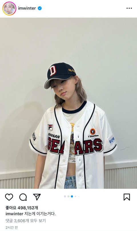 두산 패배에 정신승리중이던 시구자 에스파 윈터