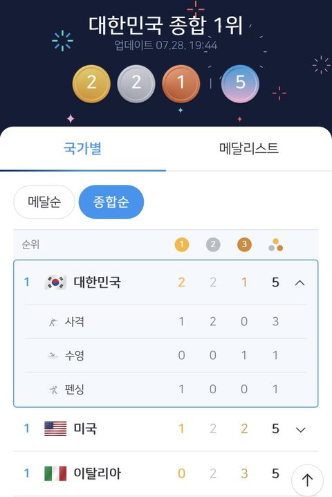 [파리올림픽] 현재 대한민국 종합 1위