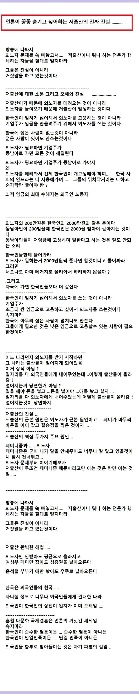 언론이 꽁꽁 숨기고 싶어하는 저출산의 진짜 진실 ..........