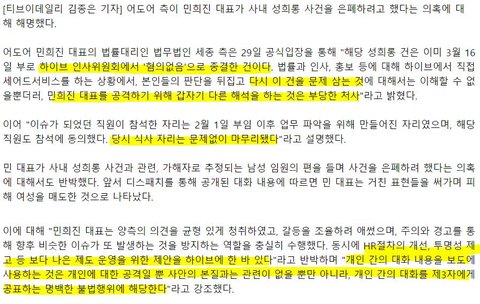 민희진은 아무 잘못한게 없고