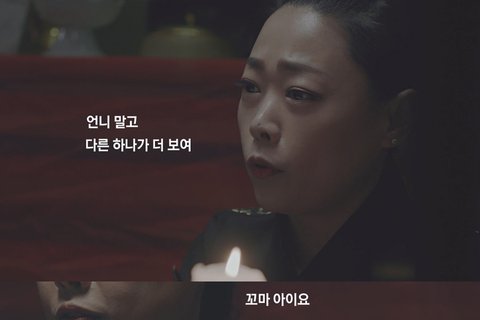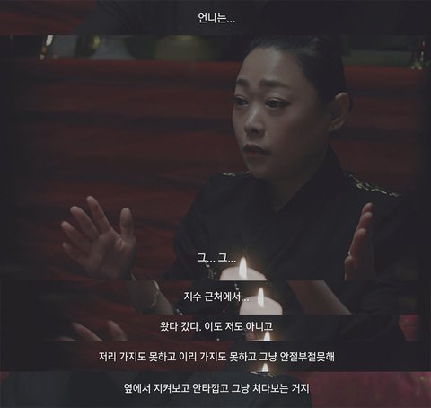 언니의 혼이 실린 무당과 주인공이 대화하는 장면
