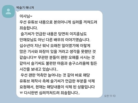 사진 = 박슬기 측으로부터 받은 사과 메시지 캡처