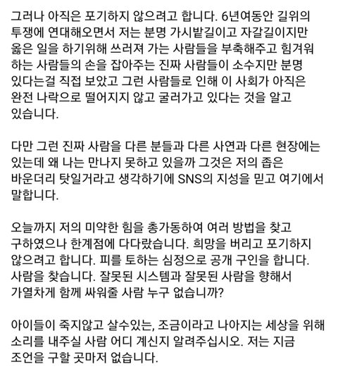 아래는 저희 어머니께서 작성하신 페이스북 글의 전문입니다.