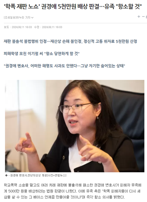 [관련기사, 나무위키 등 링크]https://www.hankookilbo.com/News/Read/A2023101809100004775?did=NAhttps://namu.wiki/w/%EA%B6%8C%EA%B2%BD%EC%95%A0%20%ED%95%99%EA%B5%90%ED%8F%AD%EB%A0%A5%20%EC%86%8C%EC%86%A1%20%EB%B6%88%EC%B6%9C%EC%84%9D%20%ED%8C%A8%EC%86%8C%20%EC%82%AC%EA%B1%B4