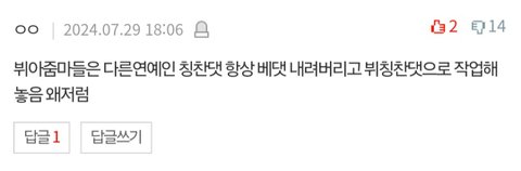 팬들은 첫 주 ar 대놓고 깔린 방송을 라이브라고 주장하더니 진짜 앵콜이 나오니… 화제성이 없으니 망정이지 다른 하이브돌들이 이랬으면 ...
